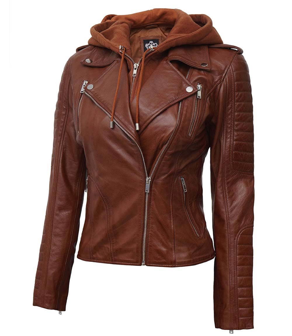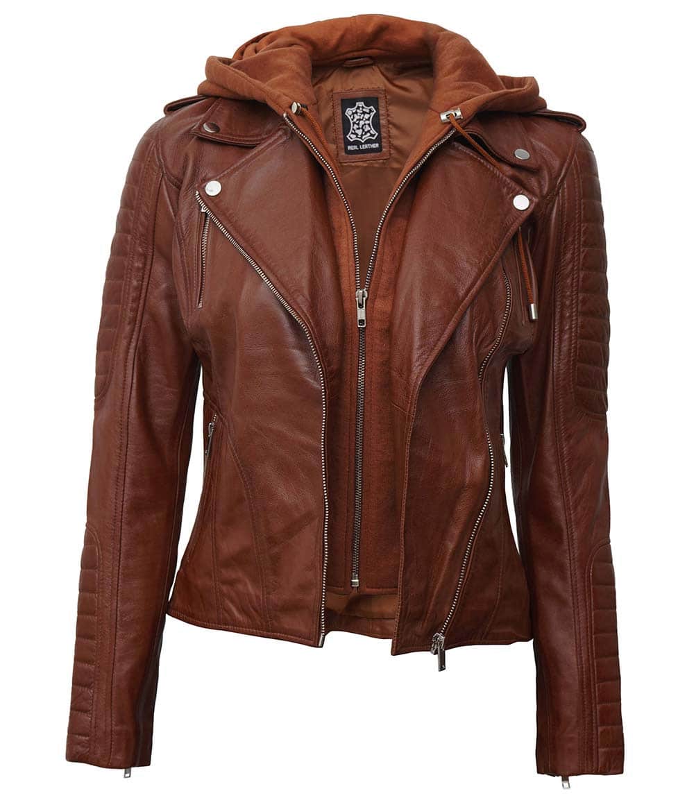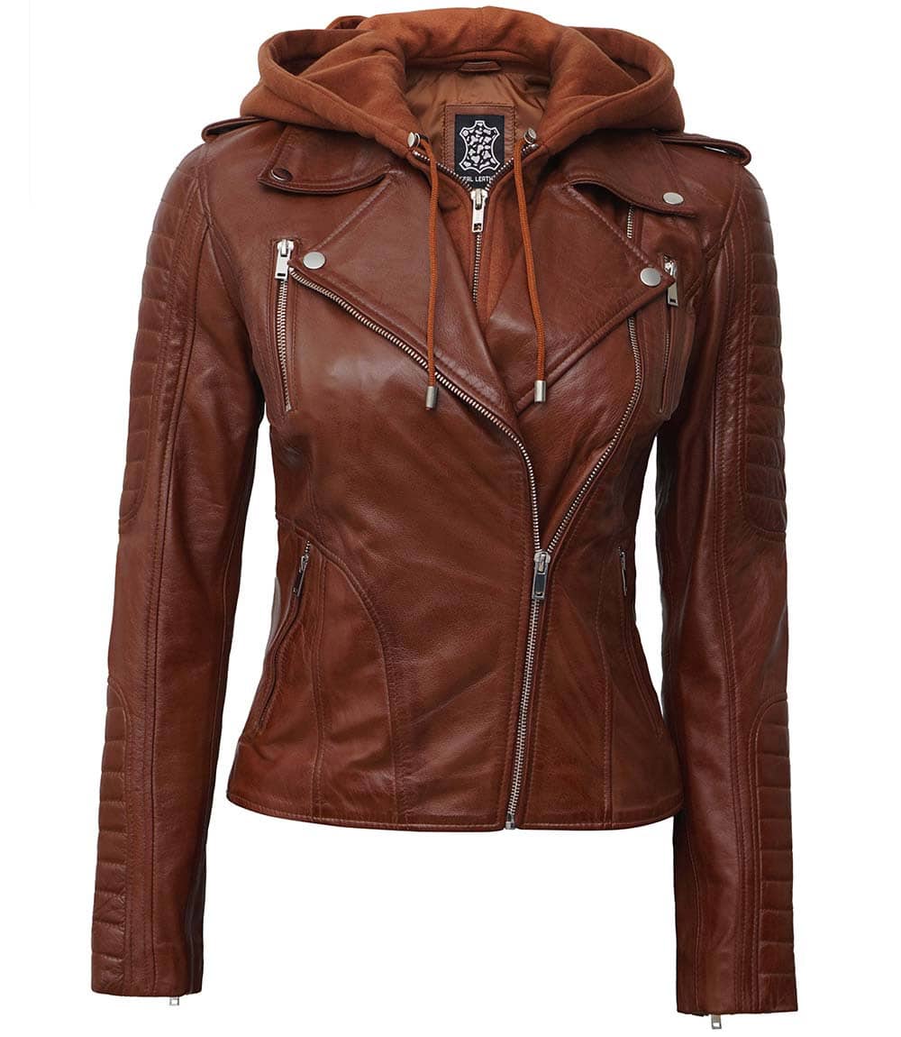 - Asymmetrical collar with removable hood.