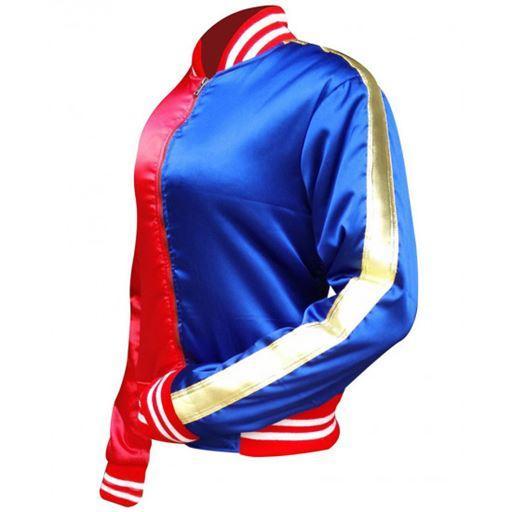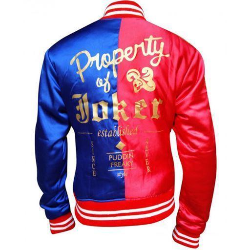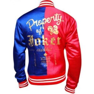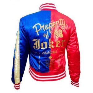 The Harley Quinn Jacket is made up of high quality satin fabric with inner viscose lining. Suicide Squad Margot Robbie jacket has rib knitted collar, cuffs and front zipper closure. The Suicide Squad jacket comes with two sides waist and one inside pockets. At the back is labeled with the famous logo of Harley Quinn Costume “Property of Joker” along with other few designs made on it. The golden lining on shoulder and arms make this jacket fabulous to wear.
